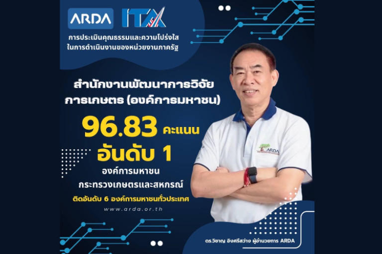 ARDA ผงาด! คว้าแชมป์องค์การมหาชนโปร่งใสอันดับ 1 กระทรวงเกษตรฯ โชว์คะแนน ITA พุ่ง 96.83 คะแนน ติด Top 6 องค์การมหาชนทั่วประเทศ