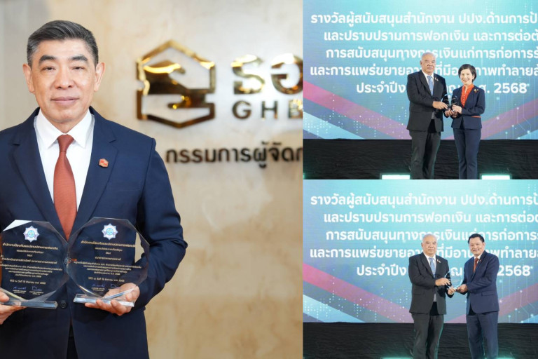 ธนาคารอาคารสงเคราะห์ (ธอส.) รับมอบโล่รางวัลผู้สนับสนุนการดำเนินงานของสำนักงานป้องกัน และปราบปรามการฟอกเงิน (ปปง.) ด้านการป้องกันและปราบปรามการฟอกเงิน และการต่อต้านการสนับสนุนทางการเงินแก่การก่อการร้ายและการแพร่ขยายอาวุธที่มีอานุภาพทำลายล้างสูง ประจำปี 2568 จำนวน 2 รางวัล โดยได้รับรางวัลจาก 2 ผลงานหลัก ประกอบด้วย (1) ผู้มีหน้าที่รายงานธุรกรรมดีเด่น ด้านรายงานการทำธุรกรรมและสนับสนุนในการดำเนินงานของสำนักงาน ปปง. และ (2) การเป็นผู้ประเมินราคาทรัพย์สินประเภทที่ดิน สิ่งปลูกสร้าง ห้องชุด ของสำนักงาน ปปง. โดยไม่คิดค่าใช้จ่ายในการประเมิน ผลงานดังกล่าวสะท้อนการเป็นองค์กรที่แข็งแกร่งด้านการให้ความร่วมมือในการป้องกันและปราบปรามการฟอกเงิน และต่อต้านการสนับสนุนทางการเงินแก่การก่อการร้ายอย่างมีประสิทธิภาพ