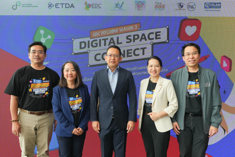 ETDA จับมือพาร์ทเนอร์ ได้แก่ สำนักงานสถิติแห่งชาติ, กรมกิจการเด็กและเยาวชน, สำนักงานกองทุนสนับสนุนการสร้างเสริมสุขภาพ (สสส.), ศูนย์ ชัวร์ก่อนแชร์ สำนักข่าวไทย อสมท และองค์การแพลน อินเตอร์เนชั่นแนล (ประเทศไทย) จัดใหญ่ EDC Pitching Season 3 รอบชิงชนะเลิศ ใต้แนวคิด "Digital Space Connect" ที่ SCBX NEXT TECH ชั้น 4 สยามพารากอน จากการแข่งขันสุดเข้มข้น ในที่สุด ทีมลิลลี่ยูว์จะบังพี่ทำไม? จากแคมเปญ “ONMII” แอปสำหรับผู้พิการทางสายตา ฟีเจอร์เสียงอัตโนมัติ แจ้งเตือนภัย แชทบอท และบทเรียนโต้ตอบ ลดช่องว่างการเข้าถึงเทคโนโลยีอย่างเท่าเทียม ชนะใจกรรมการ คว้ารางวัลชนะเลิศ รุ่นมัธยมศึกษาและอุดมศึกษา และทีม Green white cybersafe จากแคมเปญ “ดิจิทัลเซฟตี้ฮีโร่” เสริมทักษะป้องกันภัยออนไลน์ให้เยาวชน ผ่านกิจกรรม เกม และ Challenge รู้เท่าทันดิจิทัล คว้ารางวัลชนะเลิศ รุ่นวัยทำงานและบุคคลทั่วไป สุดยอดแคมเปญที่เชื่อมต่อพื้นที่การเรียนรู้สู่การพัฒนาพลเมืองดิจิทัล รับเงินรางวัล พร้อมโอกาสร่วมเป็นเครือข่ายต่อยอดผลงานสู่การใช้จริงไปกับ ETDA และ EDC