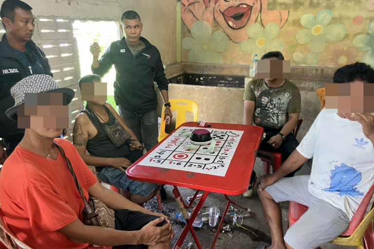 เมื่อวันที่ 20 ส.ค.68 เจ้าหน้าที่ กอ.รมน.จังหวัดชุมพร นำโดย พ.ต.กอบศักดิ์ นาคหาญ จนท.ปฏิบัติการฝ่ายข่าว พร้อมพวกร่วมกับ เจ้าหน้าที่ กก.สืบสวน.ภ.จว.ชุมพร เจ้าหน้าที่ปกครองจังหวัดชุมพร ร่วมกันจับกุมตัวผู้ต้องหา ชาย 7 ราย หญิง 1 ราย รวมผู้ต้องหา 8 ราย พร้อมของกลาง ไพ่ เสื่อปู แผงไฮโล ลูกเต๋า จานพร้อมฝาปิด และธนบัตรอีกจำนวนหนึ่ง โดยกล่าวหาว่า ร่วมกันลักลอบเล่นการพนัน (ไฮโล) พนันเอาทรัพย์สินโดยไม่ได้รับอนุญาต และร่วมกันลักลอบเล่นพนัน (ไพ่ดรัมมี่) เอาทรัพย์สินกันโดยไม่ได้รับอนุญาต