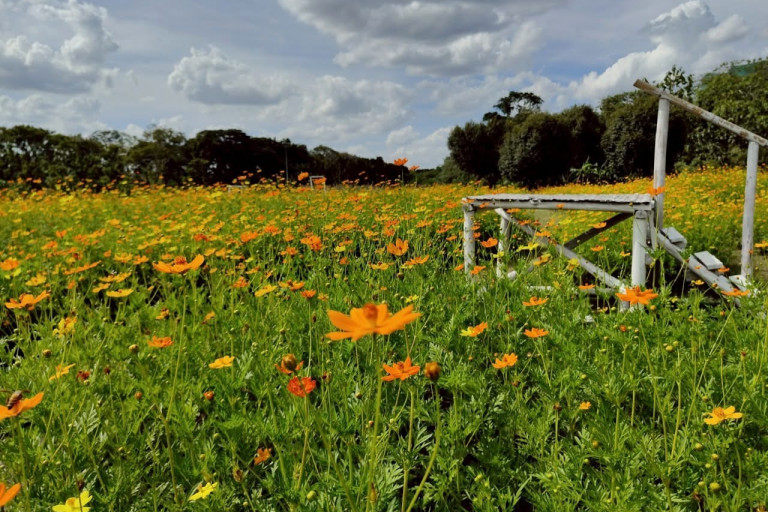 ทุ่งคอสมอสที่เกิดจากการเพาะปลูกกว่า 60,000 ต้น หวังให้เป็นจุดพักผ่อนและจุดถ่ายภาพใจกลางกรุงเทพฯ เปิดให้เข้าชมฟรีทุกวัน ตั้งแต่เวลา 04:30 น. ถึง 21:00 น. เหมาะสำหรับทุกคนที่ต้องการสถานที่พักผ่อนหย่อนใจใกล้ชิดธรรมชาติ