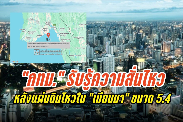 เมื่อวันที่ 21 ส.ค.68 กองเฝ้าระวังแผ่นดินไหว กรมอุตุนิยมวิทยา รายงานว่า เวลา 09.58 น. เกิดแผ่นดินไหวขนาด 5.4 ลึก 10 กม. ที่บริเวณนอกชายฝั่งทางตอนใต้ของประเทศเมียนมา ทางทิศตะวันตกเฉียงใต้ของ อ.แม่สอด จ.ตาก ประมาณ 211 กม.