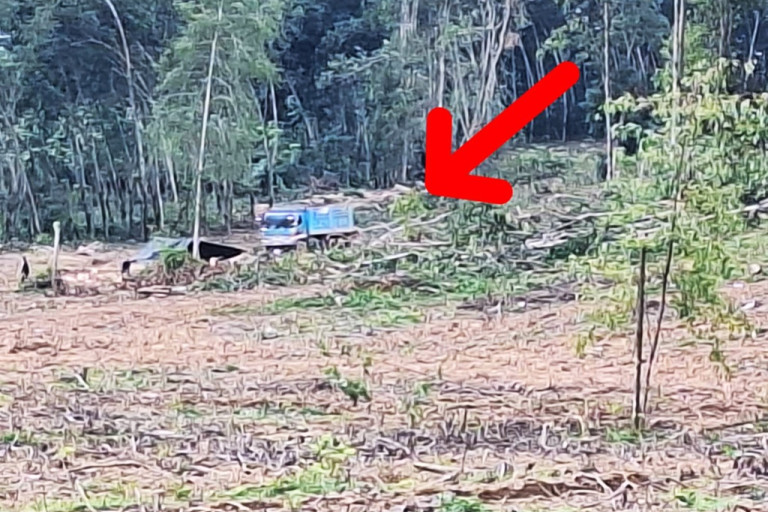 ผู้สื่อข่าวจึงลงพื้นที่ตรวจสอบ พบพื้นที่ถูกตัดไม้เป็นวงกว้างกว่า 50 ไร่ มีทั้งแคมป์แรงงานต่างด้าวหลายหลัง รถบรรทุกสิบล้อบรรทุกไม้ยาง และแรงงานต่างด้าวใช้รถไถลากจูงไม้ขึ้นรถ เมื่อเห็นผู้สื่อข่าวต่างพากันแตกฮือวิ่งหนี เพราะเข้าใจว่าเป็นเจ้าหน้าที่เข้ามาจับกุม