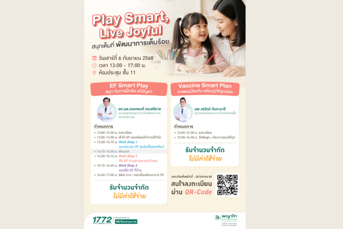 📅 6 ก.ย. 2568 | 🕐 13:00-17:00 น. | 📍 รพ.พญาไท พหลโยธิน