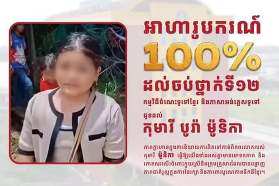 จากกรณีคลิปวิดีโอของเด็กหญิงชาวกัมพูชา ที่พูดภาษาไทยได้กล่าวอ้างสิทธิในที่ดินบริเวณชายแดนถูกเผยแพร่ในโลกออนไลน์ ล่าสุดมีความเคลื่อนไหวจากฝั่งกัมพูชา เมื่อ โรงเรียนต้นสังกัดของเด็กหญิง ออกมาสนับสนุน พร้อมประกาศ มอบทุนการศึกษาเรียนฟรีจนจบระดับมัธยมศึกษา เพื่อเป็นกำลังใจและสนับสนุนการเรียนรู้ของเธอ