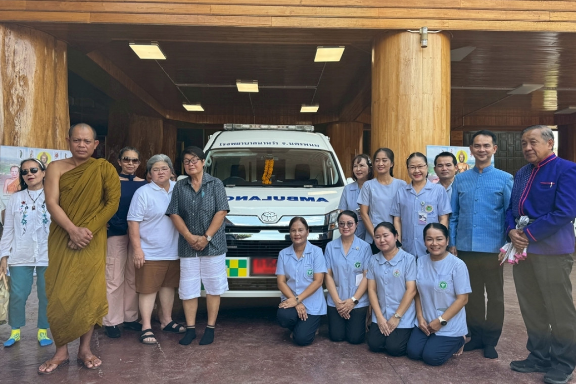 ที่วัดพุทธวนารามหรือที่เรียกกันติดปากว่า วัดป่าวังน้ำเย็น ต.เกิ้ง อ.เมือง มหาสารคาม พระราชวชิรปัญญาภรณ์ วิ. (หลวงพ่อสุริยันต์ โฆสปัญโญ)ผู้ช่วยเจ้าอาวาสวัดมหาชัย พระอารามหลวง ประธานฝ่ายสงฆ์วัดพุทธวนาราม (วัดป่าวังน้ำเย็น) มอบรถพยาบาล พร้อมอุปกรณ์ ให้แก่โรงพยาบาลนาหว้า จ.นครพนม มูลค่า 2.5 ล้านบาท บริจาคโดย ดับเพลิง SANTO คุณธิติยา ตั้งใจกตัญญู และ คุณธิติมนต์ พยัตชัยกาญจน์ จังหวัดลพบุรี จำนวน 1 คัน เพื่อใช้ในสาธารณะประโยชน์ต่อไป