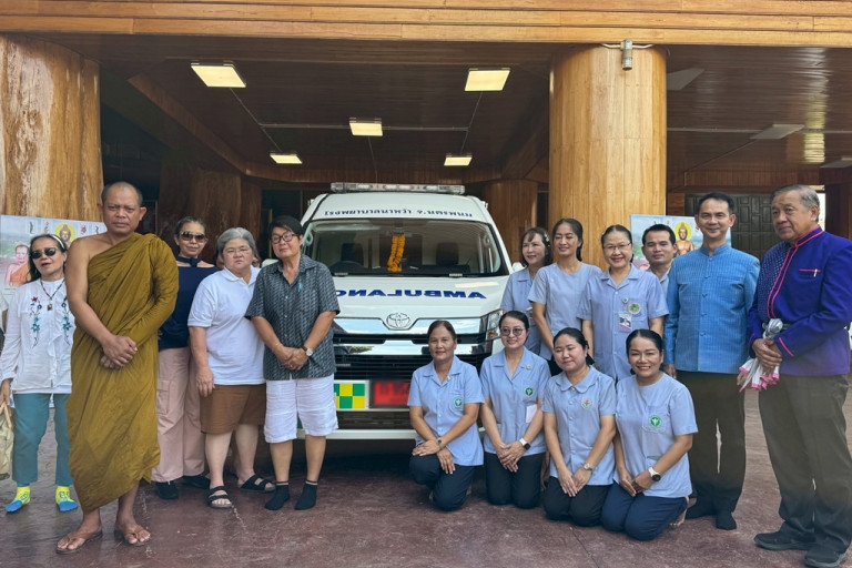พระราชวชิรปัญญาภรณ์ วิ. (หลวงพ่อสุริยันต์ โฆสปัญโญ) กล่าวว่า ได้มีญาติโยมอยากมาทำบุญกับทางวัดป่าวังน้ำเย็น อาตมาก็มองเห็นว่า ถ้างั้นก็บริจาคเป็นรถพยาบาลให้กับทางโรงพยาบาลที่ยังขาดแคลน โดยที่รถพยาบาลจะมีอุปกรณ์ช่วยเหลือที่ทันสมัยติดตั้งมาให้พร้อมสรรพ ทางโยมก็ได้ทำการการสั่งรถพยาบาลพร้อมทั้งติดตั้งอุปกรณ์ทางการแพทย์มาครบครัน มูลค่ากว่า 2.5 บาท ได้นำมาบริจาค อาตมาเองก็ได้มอบต่อไปให้กับทาง โรงพยาบาลนาหว้า จ.นครพนม ซึ่งได้ ไว้ทำการรับส่งผู้ป่วย ได้เพิ่มมากขึ้น เพื่อเป็นแก่โรงพยาบาล และช่วยบรรเทาความเดือดร้อนให้แก่ประชาชน ที่ทางโรงพยาบาลจะได้มีรถพยาบาลที่ทันสมัยออกมารับผู้ป่วยไปส่งที่โรงพยาบาลจังหวัดได้