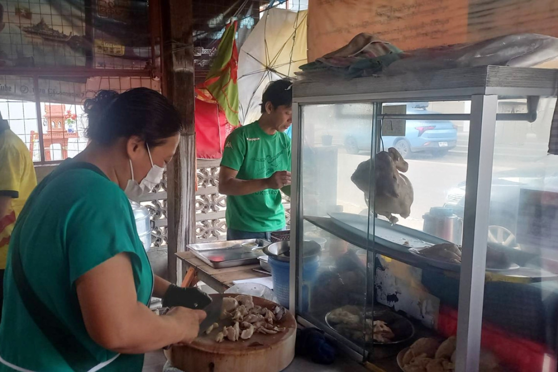 วันนี้เราจะพาท่านไปแวะกิน อาหารอร่อย ที่ร้าน “เตี้ยข้าวมันไก่” หรือ ข้าวมันไก่หมดแล้ว ร้านตั้งอยู่ถนนอินทรคีรี ผ่านหน้าวัดอรัญญเขต เทศบาลนครแม่สอด อ.แม่สอด จ.ตาก มาประมาณ 200 เมตร ร้านเล็กๆอยู่ซ้ายมือ ข้าวมันไก่ที่คนแม่สอด ตื่นนอนมาคืออาหารเช้า ที่อยากกิน เหตุที่ได้ชื่อว่า “ข้าวมันไก่หมดแล้ว” เพราะ ถ้าไปสายก็ไม่ได้กินแล้ว สักเก้าโมงกว่าๆ หรือ 09.30 น. เจ้าของร้านจะเอาป้ายมาแขวน และแจ้งว่า “ข้าวมันไก่หมดแล้ว” เพราะขายดีจริงๆ รสชาติมันดลใจได้ใจนักกินนักชิมมาก ทั้งเนื้อไก่นุ่มๆ หอมๆ ข้ามมันที่หุงพอดีๆมาแบบลงตัว บวกกับน้ำจิ้มสูตรเด็ดรสชาติ ที่เพียงน้ำจิ้มก็กินไปแล้วครึ่งค่อนเมือง เปิดขายประมาณ 07.30 น. ไม่เกิน 09.30 น.ป้ายจะขึ้นทันที “ข้าวมันไก่หมดแล้ว” คนแม่สอด รู้ซึ้งถึงรสชาติแล้ว คนต่างจังหวัดจากที่อื่นมา เราขอแนะนำ เลย ที่นี่แม่สอด ที่นี่ “เตี้ยข้าวมันไก่ ข้าวมันไก่หมดแล้ว”……..
