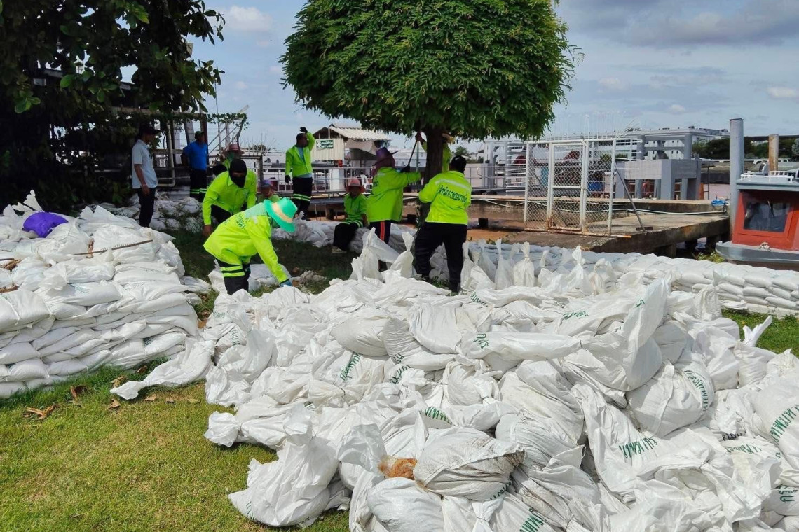 สำหรับการทำแนวเรียงกระสอบทรายป้องกันน้ำทะเลหนุนและน้ำเหนือไหลหลาก ประจำปี 2568 ดำเนินการเรียงที่ระดับความสูงจากน้ำทะเลปานกลาง + 2.40 ถึง +2.70 โดยกองระบบท่อระบายน้ำ สำนักการระบายน้ำ เริ่มดำเนินการวันที่ 15 สิงหาคม 2568 กำหนดแล้วเสร็จ 15 กันยายน 2568