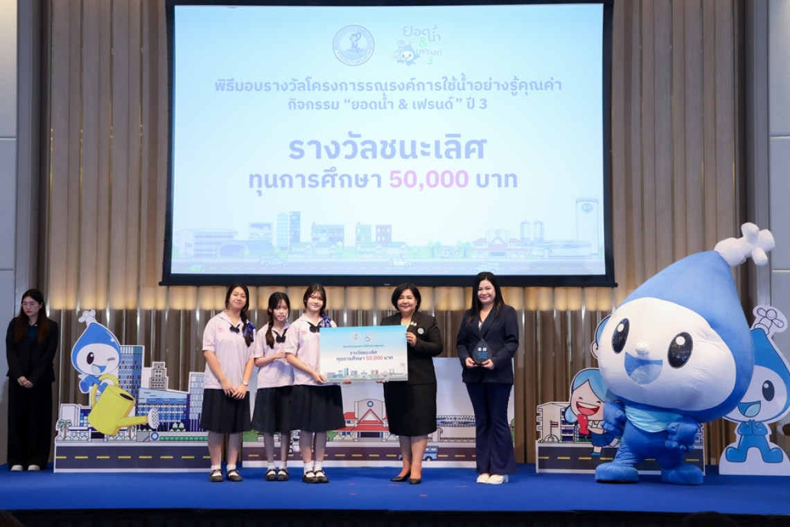 เมื่อวันพุธที่ 20 สิงหาคม 2568 เวลา 09.00 น. ณ ห้องพระศิวะ โรงแรมอัศวิน แกรนด์ คอนเวนชั่น นางสาวสุวรา ทวิชศรี ผู้ว่าการการประปานครหลวง (กปน.) เป็นประธานในพิธีมอบรางวัลการประกวดคลิป TikTok โครงการรณรงค์การใช้น้ำอย่างรู้คุณค่า ภายใต้กิจกรรม “ยอดน้ำ & เฟรนด์” ปี 3 พร้อมคณะผู้บริหาร กปน. คณะอาจารย์ และนักเรียนจากโรงเรียนในพื้นที่กรุงเทพมหานคร นนทบุรี และสมุทรปราการ เข้าร่วมพิธี การประกวดคลิป TikTok ดังกล่าว จัดขึ้นภายใต้แนวคิด “How to Save…เซฟน้ำอย่างไรให้ยั่งยืน” เป็นการต่อยอดความรู้จากการที่นักเรียนสมัครเข้าร่วมโครงการ จำนวน 21 ทีม จากโรงเรียนทั้งหมด 15 แห่ง ได้เข้าร่วมกิจกรรม Workshop ให้ความรู้เรื่องกระบวนการผลิตน้ำประปา การใช้น้ำอย่างรู้คุณค่า การใช้อุปกรณ์ประหยัดน้ำ ตลอดจนการสร้างคลิป TikTok ที่ กปน. ได้จัดขึ้นเมื่อวันที่ 1 กรกฎาคม ที่ผ่านมา และทุกทีมได้ส่งผลงานเป็นคลิป TikTok เข้าร่วมประกวด โดยได้คัดเลือกผลงานที่ผ่านเข้ารอบ จำนวน 10 ทีมโพสต์ลง TikTok ของการประปานครหลวง (MWAthailand) ชิงทุนการศึกษากว่า 175,000 บาท สำหรับ โดยผลการตัดสิน มีดังนี้