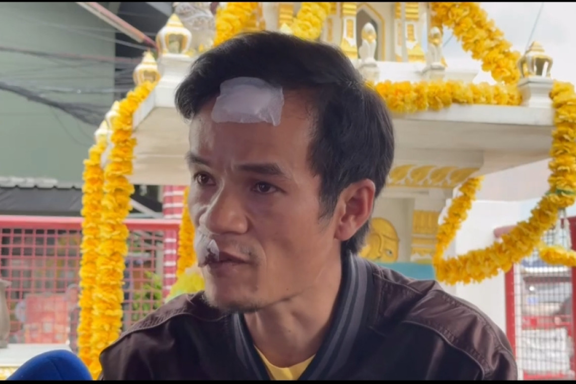 ต่อมาเวลาประมาณ เที่ยงกว่าๆ เพื่อนผู้ก่อเหตุมานั่งรอ ตนได้ยินคุยว่าจะออกไปข้างนอกด้วยกัน แต่ไม่ทราบว่าที่ไหน หลังจากที่ประกอบชุดข้างเสร็จ รถสตาร์ทไม่ติดช่างผู้ก่อเหตุหาสาเหตุไม่ได้ ซึ่งตนได้ยืนยันว่ารถก็สตาร์ทติดปกติ แค่สายพานขาด ในขณะเดียวกันเพื่อนผู้ก่อเหตุเริ่มบ่นว่า "นานจัง" จากนั้นผู้ก่อเหตุเริ่มมีอาการ หงุดหงิด สักพักถอดชุดข้างรื้อรถจยย.ออกมาอีกรอบเพื่อหาสาเหตุ หาสาเหตุไม่ได้ ส่วนเพื่อนก็บ่นว่าซ่อมนาน หลังจากนั้นผู้ก่อเหตุเดินเข้าไปในบ้านและเดินกลับมาแล้วบ่นว่ารถไม่ติดจะ"เอายังไงวะ" ตนก็เงียบก้มหน้าดูมือถือ ผู้ก่อเหตุเริ่มใช้น้ำเสียงไม่ดีและลงมือทำร้ายตนโดยไม่ทันตั้งตัว ทั้งตบและต่อยโดนชกเข้าไปที่ใบหน้าหลายครั้ง จากนั้นผู้ก่อเหตุดึงปืนที่เอวออดมา ชี้หน้าและจ่อที่หัวตน หาว่ารถตนแบตไม่ดี ตนพึ่งเปลี่ยนแบตมาไม่นาน หลังจากนั้นใช้ด้ามปืนตบหัวแตก ตนวิ่งหนีไปขอความช่วยเหลือจากคนแถวนั้นให้แจ้ง 191 และเรียกรถพยาบาล ตนรอไม่ไหวเลยวิ่งข้ามไปถนนอีกฝั่ง โบกรถแท็กซี่ไปส่งที่ สน.ดอนเมืองแจ้งความทันที