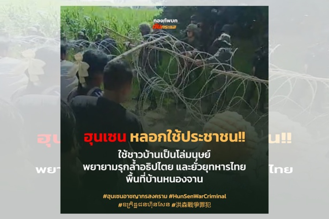 แฉ! “ฮุนเซน” หลอกใช้ชาวบ้านเป็นโล่มนุษย์ พยายามรุกล้ำอธิปไตยไทย รื้อลวดหนาม ที่บ้านหนองจาน