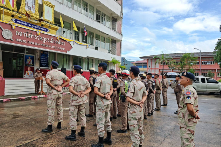 วันที่ 25 สิงหาคม 2568 เวลา 16.00 น. พ.ต.อ.วีระพงศ์ รักขิโต ผกก.สภ.เมืองพังงา เป็นประธานในพิธีปล่อยแถวระดมกำลังกวาดล้างอาชญากรรมประจำเดือนสิงหาคม 2568 ณ บริเวณด้านหน้า สภ.เมืองพังงา โดยมี พ.ต.ท. ไพรัช พงษ์ภมร สวป.สภ.เมืองพังงา, พ.ต.ท.โกวิทย์ เทพี สว.จร.ฯ, พ.ต.ท.คเชนทร์ เสนเผือ สว.อก.ฯ พ.ต.ต.นิกร โอมาก สวป.(ชส.) สภ.เมืองพังงา พร้อมด้วยข้าราชการตำรวจในสังกัดนายอภิเชษฐ์ ไพฑูลย์ ปลัดอำเภอเมืองพังงา ผู้แทนนายอำเภอเมืองพังงา พร้อมด้วยเจ้าหน้าที่ฝ่ายปกครองการปฏิบัติการครั้งนี้เป็นไปตามนโยบายของสำนักงานตำรวจแห่งชาติ เพื่อป้องกันและปราบปรามอาชญากรรมในพื้นที่ให้มีประสิทธิภาพสูงสุด