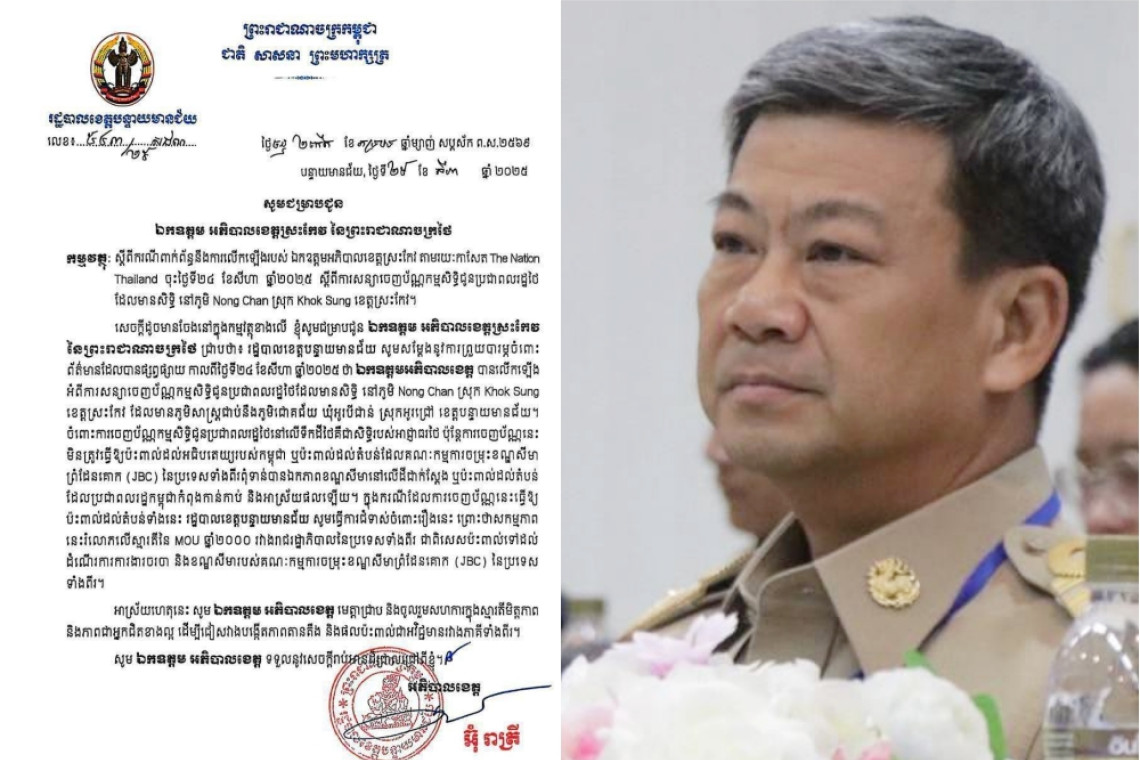 โดยในแถลงการณ์ ระบุอีกว่า องค์การบริหารส่วนจังหวัดบันเตียเมียนเจย ขอแสดงความกังวลเกี่ยวกับข้อมูลที่เผยแพร่เมื่อวันที่ 24 ส.ค. 68 ซึ่งท่านผู้ว่าฯ สระแก้วได้กล่าวให้คำมั่นสัญญาในการออกโฉนดที่ดินให้แก่พลเมืองไทยที่มีสิทธิ ในพื้นที่บ้านหนองจาน อ.โคกสูง จ.สระแก้ว ซึ่งอยู่ติดกับบ้านเซเรง ต.โอเบโจน อ.โอชรอ จ.บันเตียเมียนเจย