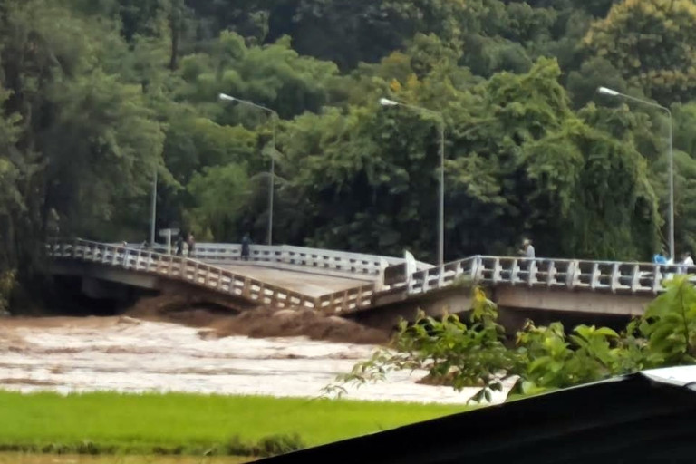 เมื่อเวลา 07.30 น. วันที่ 28 ส.ค.68 นายเอกวิทย์ มีเพียร ผู้ว่าราชการจังหวัดแม่ฮ่องสอน พร้อมด้วยนายอุดมศักดิ์ ขาวหนูนา รองผู้ว่าราชการจังหวัดแม่ฮ่องสอน นายอำเภอเมืองแม่ฮ่องสอน และหัวหน้าส่วนราชการที่เกี่ยวข้อง ลงพื้นที่สำรวจความเสียหายจากเหตุอุทกภัย น้ำป่าไหลหลาก เส้นทางหมายเลข 108 พบว่าบริเวณสะพานห้วยโป่ง ต.ห้วยโป่ง อ.เมืองแม่ฮ่องสอน ข้ามลำน้ำแม่จ๋า คอสะพานขาดทำให้รถทุกชนิดไม่สามารถสัญจรผ่านได้ โดยทางแขวงทางหลวงแม่ฮ่องสอน รวมถึงทางหน่วยงานที่เกี่ยวข้อง ได้มีการประสานเพื่อที่จะสร้างสะพานแบลีย์ชั่วคราว ให้พี่น้องได้เดินทางสัญจรได้ ซึ่งจะสามารถดำเนินการให้พี่น้องข้ามไปยังฝั่งอำเภอขุนยวม ได้ภายในวันที่ 1 กันยายน 2568 ที่จะถึงนี้