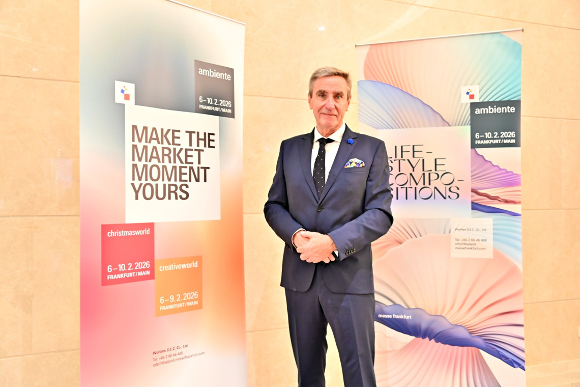 นายสเตฟาน คัวร์ซอว์สกี (Mr. Stephan Kurzawski) รองประธานอาวุโส Messe Frankfurt เปิดเผยว่า เมสเซ่ แฟรงก์เฟิร์ต, เยอรมัน พร้อมแล้วในการจัดงาน Ambiente, Christmasworld และ Creativeworld ซึ่งไม่ได้เป็นเพียงงานแสดงสินค้า แต่เป็น ศูนย์รวมแรงบันดาลใจ เทรนด์ใหม่ระดับโลกและโอกาสทางธุรกิจ ด้านสินค้าไลฟ์สไตล์ ของตกแต่งเทศกาล และงานสร้างสรรค์ ที่เชื่อมโยงผู้ผลิต แบรนด์ ดีไซเนอร์ และผู้ค้าปลีกจาก 170 ประเทศทั่วโลก ผู้ประกอบการทั่วโลกเข้าร่วมงานแสดงสินค้า จำนวนประมาณ 4,700 ราย และคาดว่าจะมีผู้เข้าชมงานประมาณ 1.5 แสนคน เรามุ่งหวังที่จะเห็นผู้ประกอบการไทยเข้ามามีบทบาทมากขึ้นในตลาดโลกผ่านงานในครั้งนี้