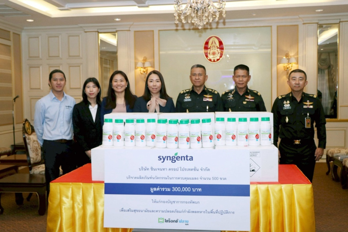 ซินเจนทา ประเทศไทย เดินหน้าสนับสนุนการดูแลสุขอนามัยและความปลอดภัยของเจ้าหน้าที่ผู้ปฏิบัติหน้าที่ในพื้นที่ชายแดน โดย ทีมผลิตภัณฑ์กำจัดแมลงรบกวนและแมลงพาหะ จาก ซินเจนทา โปรเฟสชันแนล โซลูชันส์ (Syngenta Professional Solutions) มอบผลิตภัณฑ์กำจัดแมลง “ไซร๊อกซ์” จำนวน 500 ขวด มูลค่ารวมกว่า 300,000 บาท ให้กับกองทัพไทย โดยมี พลเอก ณัฐวุฒิ นาคะนคร รองผู้บัญชาการทหารบก เป็นผู้แทนรับมอบอย่างเป็นทางการ ณ กองบัญชาการกองทัพบก เพื่อช่วยเหลือกำลังพลในพื้นที่ปฏิบัติการที่กำลังประสบปัญหาแมลงรบกวนอันนำมาซึ่งพาหะนำโรค