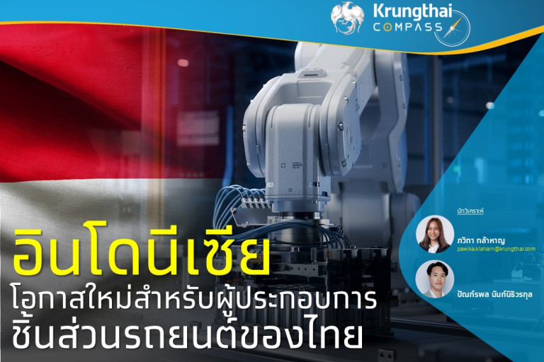 Krungthai COMPASS แนะนำภาครัฐควรเร่งส่งเสริม R&D พัฒนาแรงงานเฉพาะทาง ในสินค้าที่ไทยยังแข่งขันได้จำกัด รวมถึง Smart Auto Parts ซึ่งเป็นอุตสาหกรรมแห่งอนาคต สนับสนุนการลงทุนในเทคโนโลยีผ่านสิทธิประโยชน์ต่างๆ ควบคู่กับการสร้างความร่วมมือระหว่างประเทศ ขณะที่ผู้ประกอบการไทยควรเร่งยกระดับประสิทธิภาพการผลิตและหาโอกาสขยายบทบาทในห่วงโซ่อุปทาน EV อินโดนีเซีย รวมทั้งประเทศอื่นๆ ที่มีศักยภาพในการขยายส่วนแบ่งตลาด
