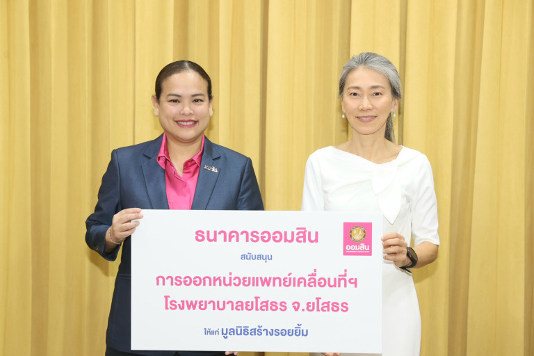 นางสาววชิรา การสุทธิ์ รองผู้อำนวยการธนาคารออมสิน กลุ่มการตลาดเพื่อความยั่งยืน มอบเงิน จำนวน 1 ล้านบาท แก่มูลนิธิสร้างรอยยิ้ม สำหรับเป็นเงินทุนสนับสนุนการออกหน่วยแพทย์เคลื่อนที่ฯ โรงพยาบาลยโสธร จังหวัดยโสธร โดยมีทันตแพทย์หญิงยุพเรศ นิมกาญจน์ ประธานกรรมการมูลนิธิฯ เป็นผู้รับมอบ เพื่อให้ความช่วยเหลือผู้ป่วยยากไร้ที่อาศัยในพื้นที่ห่างไกลที่มีภาวะปากแหว่งเพดานโหว่ แผลไฟไหม้ และความผิดปกติอื่น ๆ บนใบหน้า ได้รับการผ่าตัดและการรักษาอย่างต่อเนื่องโดยไม่มีค่าใช้จ่าย ซึ่งจะช่วยส่งเสริมสุขภาวะและคุณภาพชีวิตให้แก่ผู้ป่วยกลับมาดำเนินชีวิตได้อย่างมีความสุขและมีรอยยิ้มที่สดใสอีกครั้ง โดยการออกหน่วยแพทย์เคลื่อนที่ฯ ธนาคารออมสินร่วมส่งทีมโค้ชออมในพื้นที่ ให้ความรู้ทางการเงินและการออม ให้กับนักศึกษาวิทยาลัยเทคนิคยโสธรและนักเรียนโรงเรียนยโสธรพิทยาคม เพื่อช่วยสร้างวินัยทางการเงินที่ดี ออมอย่างมีเป้าหมายสำหรับการพึ่งพาตนเอง และสามารถบริหารจัดการเงินให้ง่ายและมีประสิทธิภาพ ในโอกาสนี้ด้วย ณ ธนาคารออมสินสำนักงานใหญ่ เมื่อวันที่ 1 กันยายน 2568