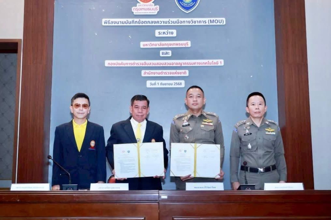 วันที่ 1 ก.ย.68 ที่ มหาวิทยาลัยกรุงเทพธนบุรี พล.ต.ต.ดร.ศิริวัฒน์ ดีพอ ผบก.สอท.1 พร้อม พ.ต.อ.คมสันต์ กันหา ผกก.4 บก.สอท.1 1. มหาวิทยาลัยกรุงเทพธนบุรี ยินดีสนับสนุนการศึกษาให้กับข้าราชการตำรวจ บก.สอท.1 (การรับเข้าศึกษาในมหาวิทยาลัย ,สิทธิประโยชน์ต่างๆ ฯลฯ)