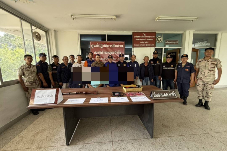 สืบเนื่องจาก เวลา 06.00 น. นายตวงอัฐ บุตรวิชา นายอำเภอป่าติ้ว/ศป.ปส.อ.ป่าติ้ว สั่งการให้ ฝ่ายความมั่นคงอำเภอป่าติ้ว สมาชิก อส. ร้อย อส.อ. ป่าติ้ว ได้บูรณาการร่วมกับเจ้าหน้าที่ตำรวจสถานีตำรวจภูธรอำเภอป่าติ้ว กำนัน ผู้ใหญ่บ้าน ผู้ช่วยผู้ใหญ่บ้านฝ่ายรักษาความสงบ และชุดรักษาความปลอดภัยหมู่บ้าน (ชรบ.) เข้าปิดล้อมตรวจค้นเป้าหมายเครือข่ายยาเสพติดในพื้นที่จนสามารถจับกุมผู้ต้องหา 3 ราย พร้อมของกลางยาบ้า รวมจำนวน 1,959 เม็ด และจับกุมผู้ต้องหาอีก 1 ราย พร้อมของกลางอาวุธปืนยาวไทยประดิษฐ์ (ปืนแก๊ป) จำนวน 1 กระบอก จึงได้นำตัวผู้ต้องหาทั้งหมดพร้อมของกลางส่งพนักงานสอบสวน สภ.ป่าติ้ว ดำเนินคดีตามกฎหมายต่อไป