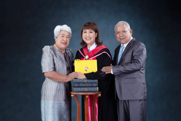 โดยในปีนี้ เธอเข้ารับพระราชทานปริญญาบัตรร่วมกับคนบันเทิงชื่อดังมากมาย อาทิ หม่ำ จ๊กม๊ก, อ๊อฟ พงษ์พัฒณ์, เอ ศุภชัย, ปัทมา ปานทอง และ เล้ง ณัฐพล เป็นต้น