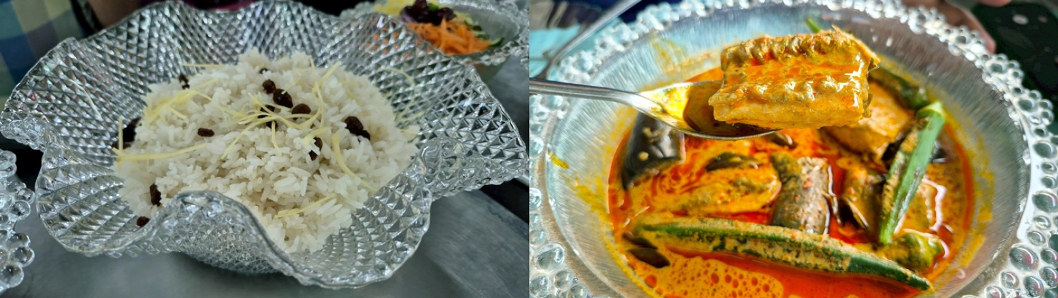 เมนูขึ้นชื่อของร้านคือ แกงตอแม๊ะ ปลาทะเลสดอย่าง “ปลาอีคุด” แล้วแต่ฤดูกาล ข้าวที่หุงด้วยกะทิ ใส่ลูกเกด โรยขิงอ่อน เพิ่มความหอมและตัดเลี่ยน ทุกขั้นตอนปรุงด้วยสูตรโบราณที่สืบทอดมาตั้งแต่รุ่นคุณแม่จนถึงปัจจุบัน