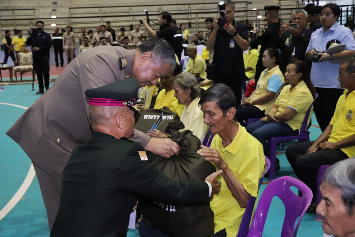 จากนั้นเดินทางไปยัง สนามกีฬากลางจังหวัดแม่ฮ่องสอน ตำบลผาบ่อง อำเภอเมืองแม่ฮ่องสอน เชิญพระราชกระแสทรงห่วงใยของพระบาทสมเด็จพระเจ้าอยู่หัว และสมเด็จพระนางเจ้า ฯ พระบรมราชินี ในการเชิญสิ่งของพระราชทาน จากมูลนิธิราชประชานุเคราะห์ ในพระบรมราชูปถัมภ์ จำนวนรวม 1,262 ชุด เพื่อมอบให้แก่ราษฎรผู้ประสบอุทกภัย จำนวน 1,000 ชุด และมอบให้แก่ เด็กแรกเกิดถึง 2 ขวบ จำนวน 262 ชุด มอบแก่ผู้ว่าราชการจังหวัด นายอำเภอ และประชาชนที่ประสบอุทกภัยราษฎรในพื้นที่จังหวัดแม่ฮ่องสอน เข้ารับมอบสิ่งของพระราชทาน จำนวน 220 คน พร้อมทั้งลงพื้นที่มอบสิ่งของพระราชทานแก่ประชาชนในพื้นที่บ้านผาบ่อง ตำบลผาบ่อง อำเภอเมืองแม่ฮ่องสอน จำนวน 5 ชุด ซึ่งพสกนิกรชาวจังหวัดแม่ฮ่องสอน ต่างรู้สึกสำนึก ในพระมหากรุณาธิคุณ ของพระบาทสมเด็จพระเจ้าอยู่หัว อย่างหาที่สุดมิได้ ที่ทรงมีพระเมตตาต่อพสกนิกร ที่ได้รับความเดือดร้อนจากอุทกภัยในครั้งนี้