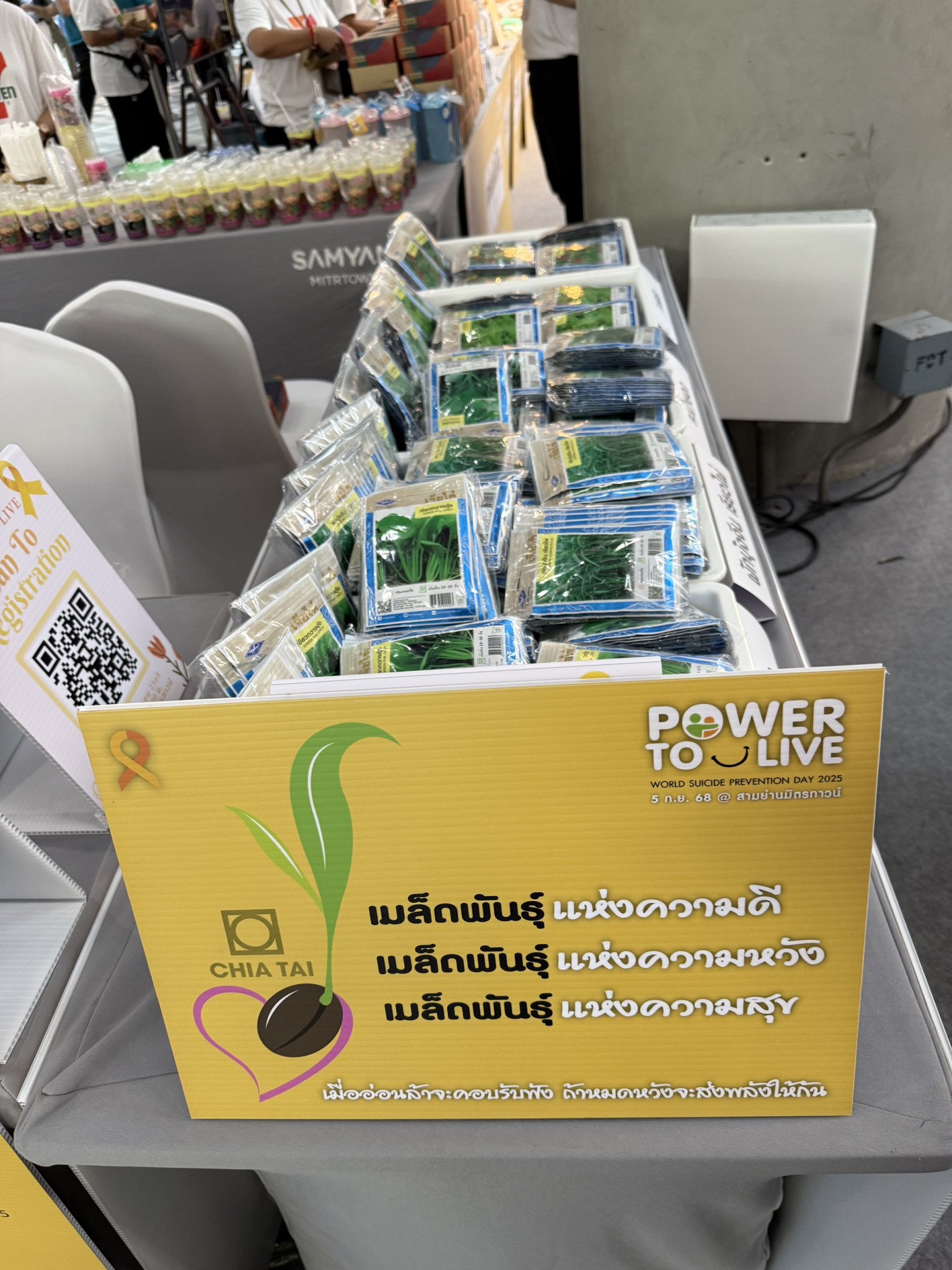 วันศุกร์ที่ 5 กันยายน 2568 คุณโกมล เจียรวนนท์ ประธานที่ปรึกษาประธานคณะผู้บริหาร สำนักประธานคณะผู้บริหาร และเลขาธิการ สมาคมป้องกันการฆ่าตัวตายไทย กรมสุขภาพจิต สมาคมจิตแพทย์ แห่งประเทศไทย กรุงเทพมหานคร สมาคมสะมาริตันส์แห่งประเทศไทย เครือข่ายรณรงค์ป้องกันการฆ่าตัวตาย และนักศึกษาหลักสูตรTENX4 ได้จัดงาน Power to Live เนื่องในวันป้องกันการฆ่าตัวตายโลก 2568 ณ ศูนย์การค้าสามย่านมิตรทาวน์ ทั้งนี้ บริษัท เจียไต๋ จำกัด ขอชวนคนไทยเสริมสร้างพลังใจให้เกิดความสุข ความหวัง รู้ถึงคุณค่าของตนเอง ช่วยเหลือซึ่งกันและกัน และตระหนักรู้ถึงการป้องกันการฆ่าตัวตาย ลดStigma สร้าง mindset และ skill ในการรับรู้และป้องกันซึมเศร้า และลดโอกาสการฆ่าตัวตาย