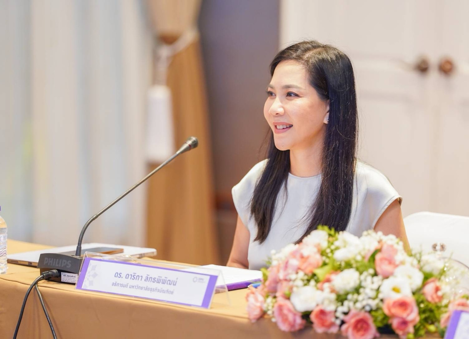 ดร.ดาริกา ลัทธพิพัฒน์ อธิการบดีมหาวิทยาลัยธุรกิจบัณฑิตย์ เปิดเผยว่า ความร่วมมือครั้งนี้เกิดจากความตั้งใจของทั้งสองมหาวิทยาลัยในการยกระดับการเรียนการสอนด้านกายภาพบำบัดให้มีมาตรฐานสูงสุดและสอดคล้องกับเกณฑ์วิชาชีพ การได้ร่วมงานกับมหาวิทยาลัยพะเยา ซึ่งมีศักยภาพและความพร้อมในฐานะ “สถาบันพี่เลี้ยง” เป็นโอกาสสำคัญที่จะช่วยส่งเสริมการพัฒนาหลักสูตร การวิจัย และการสร้างบัณฑิตที่มีคุณภาพเพื่อตอบสนองความต้องการของสังคมไทยและสังคมโลก