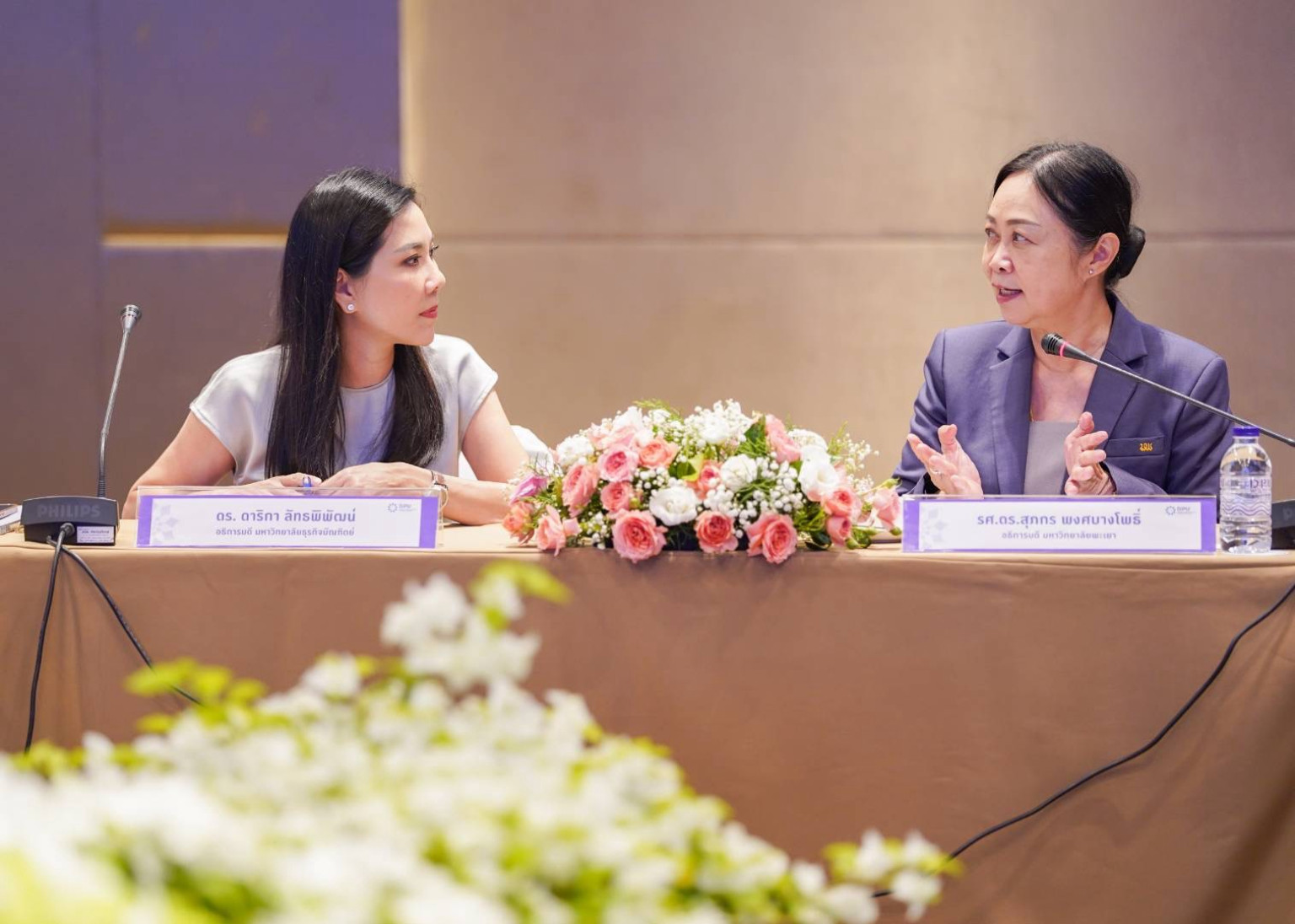 พิธีลงนามครั้งนี้ได้รับเกียรติจาก ดร.ดาริกา ลัทธพิพัฒน์ อธิการบดีมหาวิทยาลัยธุรกิจบัณฑิตย์ และ รองศาสตราจารย์ ดร.สุภกร พงศบางโพธิ์ อธิการบดีมหาวิทยาลัยพะเยา ในฐานะผู้แทนลงนามของทั้งสองสถาบัน โดยมีคณะผู้บริหารและคณาจารย์จากทั้งสองมหาวิทยาลัยร่วมเป็นสักขีพยาน