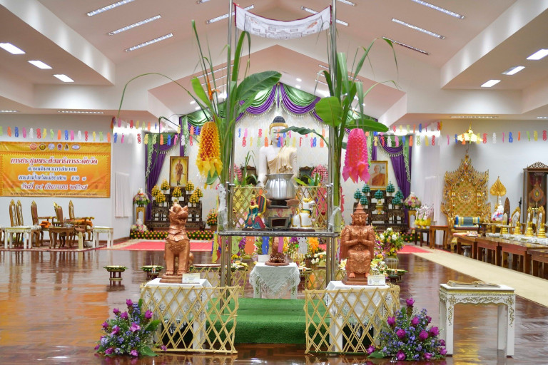 เวลา 06.00 น. พระสงฆ์สวดถวายพรพระ ถวายภัตตาหารเช้า แด่พระภิกษุสามเณร และเลี้ยงอาหารคณะศรัทธา