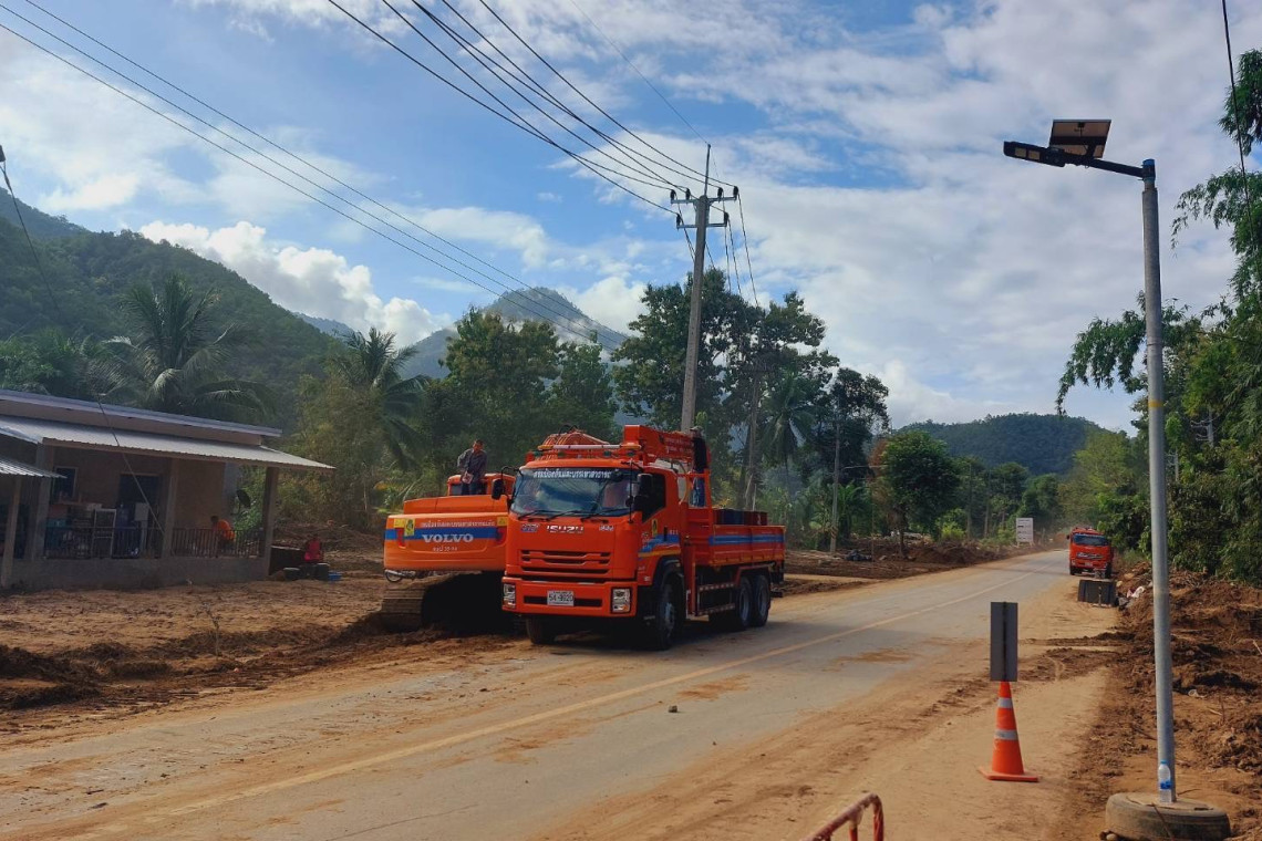 เมื่อวานนี้ (5 ก.ย. 68) ทีมปฏิบัติการจาก ปภ. ได้สนับสนุนเครื่องจักรกลหนัก ออกปฏิบัติการกำจัดเศษสวะที่ถับถมจากน้ำป่าไหลหลากและปรับปรุงภูมิทัศน์บริเวณรอบบ้านเรือนประชาชนและพื้นที่สาธารณะในพื้นที่หมู่ที่ 12 บ้านผาบ่อง อ.เมืองฯ จ.แม่ฮ่องสอน รวมถึงยังได้กระจายกำลังเครื่องจักรกลและเจ้าหน้าที่เร่งดำเนินการเคลียร์ดินสไลด์ที่ได้ปิดทับเส้นทางเข้า-ออกบริเวณบ้านหนองเขียว 2 ช่วง ในพื้นที่หมู่ที่ 10 ต.ห้วยโป่ง อ.เมืองฯ จ.แม่ฮ่องสอน ซึ่งเป็นเส้นทางเชื่อมระหว่างบ้านหนองเขียว - บ้านแม่จ๋า ช่วงที่ 1 ก่อนถึงจุดชมวิวบ้านหนองเขียว ประมาณ 2 กิโลเมตร โดยดินได้สไลด์เป็นระยะทางประมาณ 120 เมตร และช่วงที่ 2 บริเวณจุดชมวิวบ้านหนองเขียว ดินได้สไลด์เป็นระยะทางประมาณ 200 เมตร โดยขณะนี้เส้นทางสัญจรระหว่างบ้านหนองเขียว - บ้านแม่จ๋า ประชาชนสามารถใช้เส้นทางในการสัญจรได้แล้ว /////////////