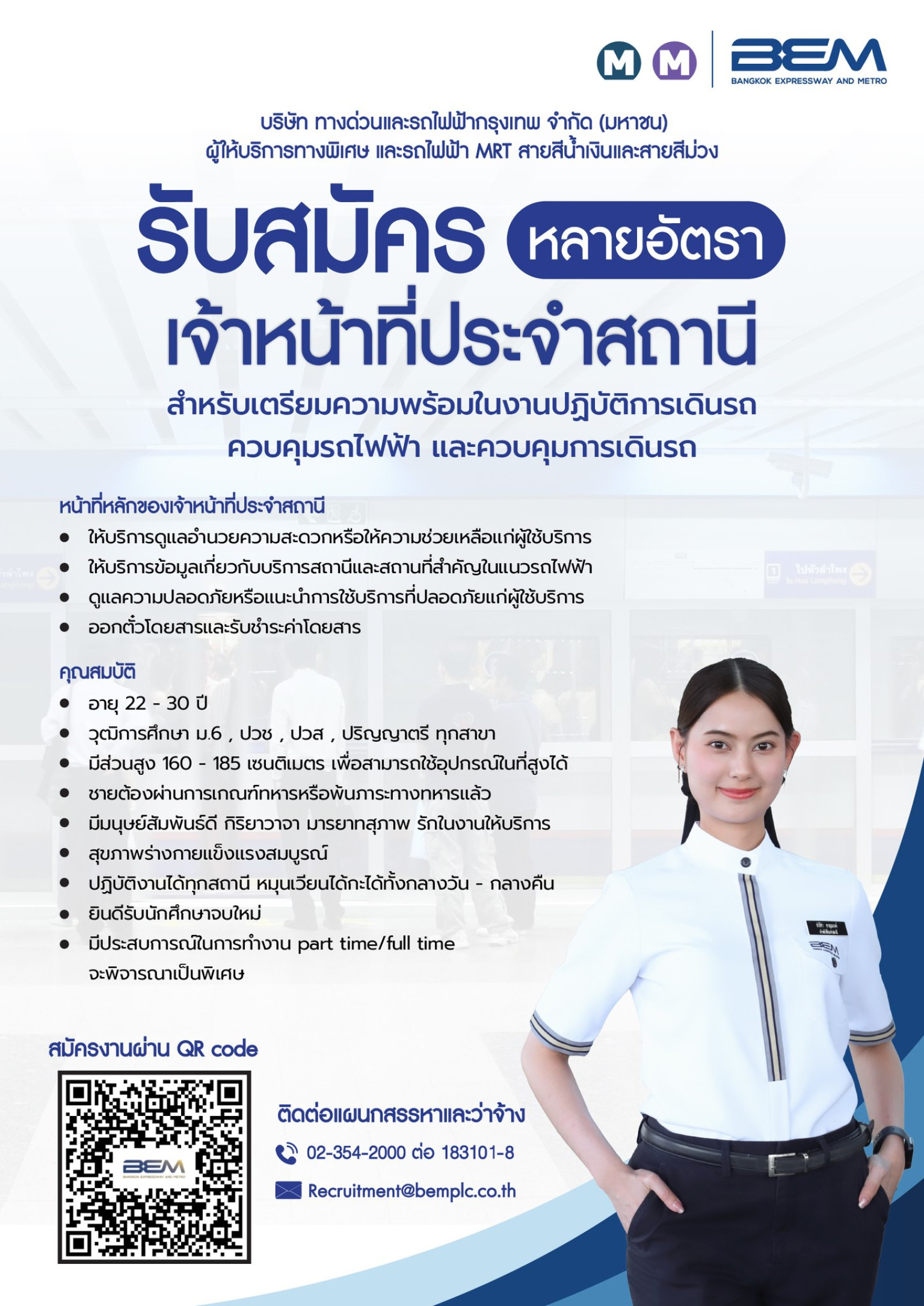 BEM เปิดรับสมัครเจ้าหน้าที่ประจำสถานี (หลายอัตรา) !!