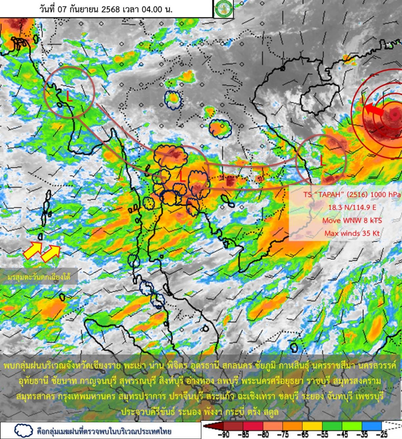 อย่างไรก็ตาม พายุโซนร้อน “ตาปะฮ์” (TAPAH) ที่คาดว่าจะขึ้นฝั่งประเทศจีนในวันพรุ่งนี้ จะไม่ส่งผลกระทบโดยตรงต่อประเทศไทย