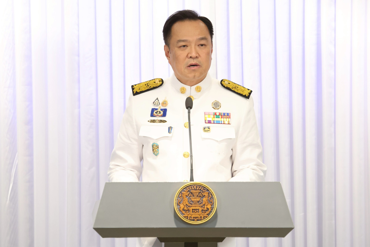 วันที่ 7 ก.ย.2568 เวลา 12.15 ที่พรรคภูมิใจไทย นายอนุทิน ชาญวีรกูล นายกรัฐมนตรี แถลงภายหลังรับพระบรมราชโองการโปรดเกล้าฯ แต่งตั้งเป็นนายกฯ ว่า นับเป็นพระมหากรุณาธิคุณแก่ตัวกระผมอันหาที่สุดมิได้ ที่พระบาทสมเด็จพระเจ้าอยู่หัวฯ ทรงพระกรุณาโปรดเกล้าฯ ให้ดำรงตำแหน่งนายกรัฐมนตรี ตนยืนอยู่ตรงนี้ด้วยความตระหนักดีกว่าการเข้าสู่ตำแหน่งนายกฯ ในวันนี้อาจมีข้อจำกัดหลายด้านในการปฏิบัติหน้าที่บริหารราชการแผ่นดิน อย่างไรก็ตามขอให้ความมั่นใจต่อประชาชนว่าตนและครม.ทุกคนจะมุ่งมั่นทุ่มเททำงาน ไม่เห็นแก่เหน็ดเหนื่อย ใช้ทุกสิ่งอย่างที่มีอยู่ทั้งกำลังกาย กำลังสมอง ให้ประเทศไทยหลุดพ้นจากสถานการณ์วิกฤตต่างๆ เร็วที่สุด .
