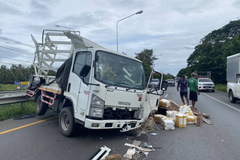 เมื่อเวลา 07.30 น. วันที่ 7 กันยายน 2568 เกิดเหตุรถบรรทุกเสียหลักพลิกคว่ำบนถนนเพชรเกษม ขาออก ช่วง กม. 271+700 บริเวณบ้านสำโหรง ตำบลสามกระทาย อำเภอกุยบุรี จังหวัดประจวบคีรีขันธ์ สิ่งของที่บรรทุกมาตกเกลื่อนเต็มพื้นถนน โดยไม่พบผู้บาดเจ็บหรือผู้ขับขี่อยู่ในที่เกิดเหตุ