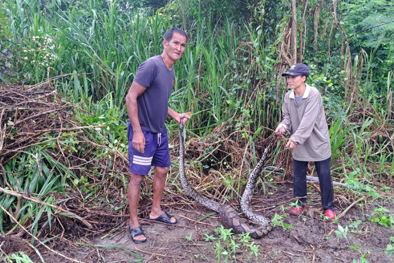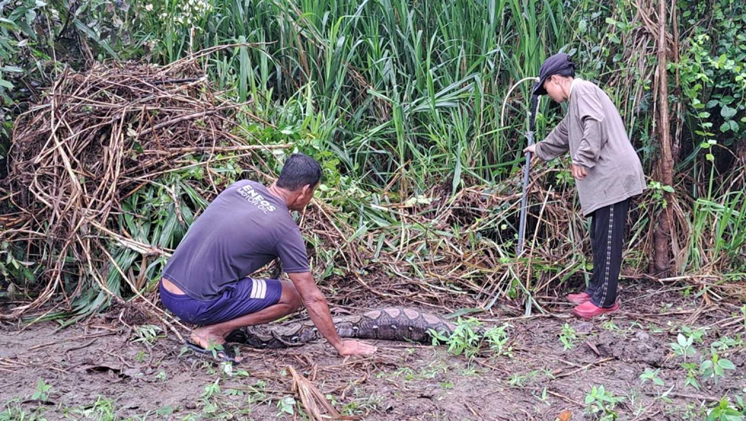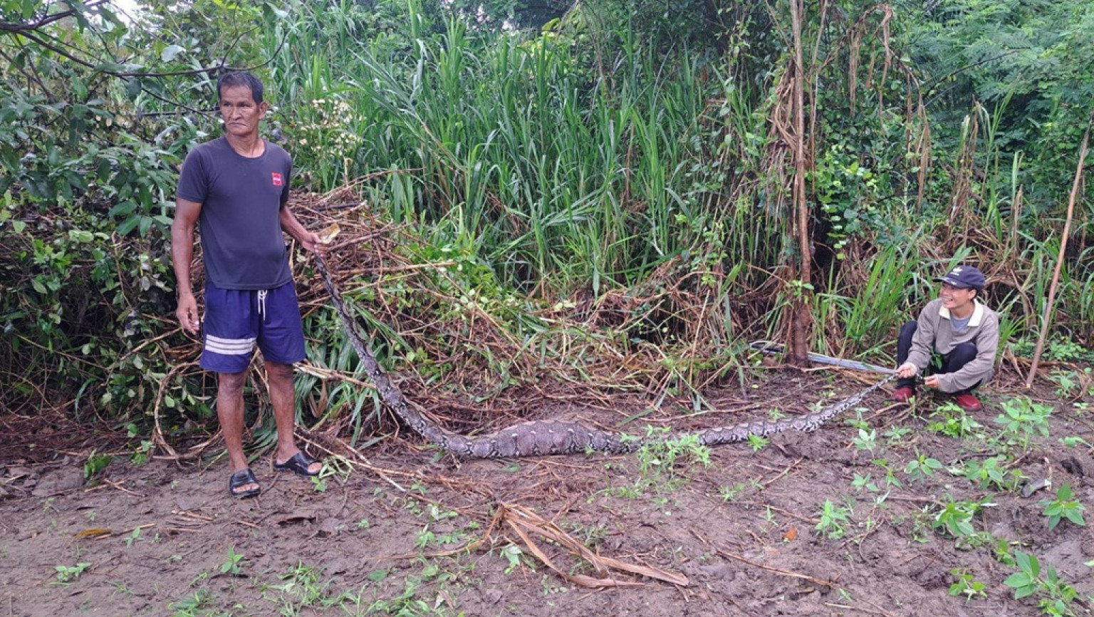 เจ้าหน้าที่จึงใช้ความระมัดระวังในการจับงู โดยใช้อุปกรณ์จับงูเฉพาะทาง ก่อนจะสามารถควบคุมตัวงูเหลือมไว้ได้สำเร็จ จากนั้นได้นำใส่ถุงปุ๋ยอย่างแน่นหนา เพื่อเคลื่อนย้ายไปปล่อยคืนสู่ธรรมชาติในพื้นที่ห่างไกลจากชุมชนต่อไป