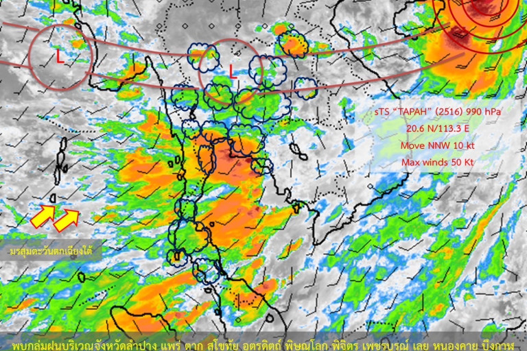 อนึ่ง พายุโซนร้อนกำลังแรง "ตาปะฮ์" (TAPAH) ซึ่งอยู่ในบริเวณทะเลจีนใต้ตอนบน มีแนวโน้มจะเคลื่อนขึ้นฝั่งบริเวณประเทศจีนตอนใต้ในวันนี้ (8 ก.ย. 68) โดยพายุนี้ไม่ส่งผลกระทบโดยตรงต่อลักษณะอากาศของประเทศไทย