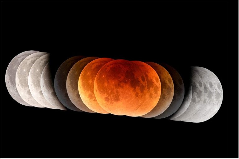 ภาพดังกล่าวบันทึกในช่วงเวลาประมาณ 22:29 - 03:55 น. ขณะดวงจันทร์เข้าสู่เงามัวของโลก ส่งผลให้ความสว่างเริ่มลดลง จากนั้นเข้าสู่เงามืดของโลกเกิดเป็นปรากฏการณ์จันทรุปราคาบางส่วน ดวงจันทร์เต็มดวงมีลักษณะเว้าแหว่ง จนกระทั่งเข้าสู่เงามืดของโลกทั้งดวง เป็นช่วงปรากฏการณ์จันทรุปราคาเต็มดวง ตั้งแต่ 00:31 - 01:53 น. กินเวลานานถึง 1 ชั่วโมง 22 นาที ส่งผลให้ช่วงดังกล่าวดวงจันทร์ปรากฏเป็นสีแดงอิฐ จากนั้นออกจากเงามืดของโลกเข้าสู่เงามัวอีกครั้ง เกิดเป็นจันทรุปราคาบางส่วน จนกระทั่งออกจากเงาโลกโดยสมบูรณ์ และดวงจันทร์กลับมาสว่างปกติ