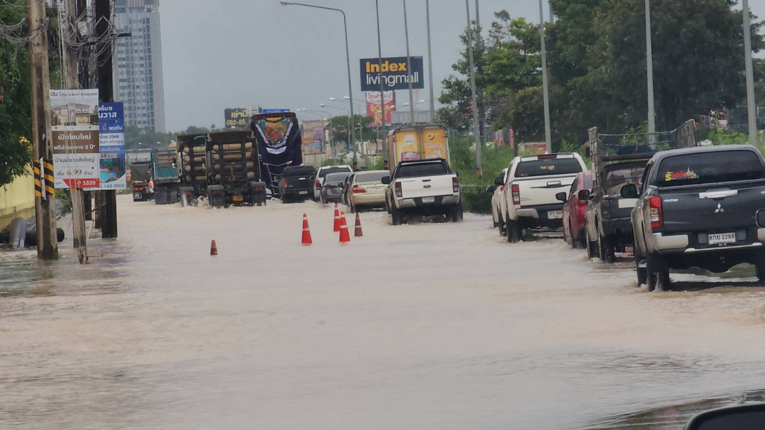 วันที่ 8 ก.ย.2568 เวลา 09.00 น. ผู้สื่อข่าวรายงานว่า เกิดฝนตกหนักตกตลอดทั้งคืนที่ผ่านมา ส่งผลให้เกิดน้ำท่วมขังในหลายพื้นที่ของจังหวัดระยอง โดยเฉพาะพื้นท่ตำบลทับมา อ.เมืองระยอง ที่เป็นพื้นที่น้ำท่วมซ้ำซาก โดยพบว่ามีน้ำเอ่อจากคลองทับมา ไหลท่วมถนนบายพาสสาย 36 ทั้งขาเข้าและออก บริเวณช่วงหน้าวัดทับมา น้ำท่วมไปฝั่งละ 2 เลน เจ้าหน้าที่ได้เร่งอำนวยความสะดวกการสัญจรไปมาของผู้ใช้รถใช้ถนนให้ใช้ความระมัดระวัง นอกจากนี้ยังพบว่าถนนสายทับมา-เกาะพรวด มีน้ำท่วมสูงกว่า 30 ซม. รถเล็กสัญจรไม่ได้ และถนนสายทับมา-เขาโพธิ์ ถนนสายบ้านหนองมะหาด มีน้ำท่วมขังถนน บริเวณสะพานหมู่บ้านจัดสรรในพื้นที่บ้านหนองมะหาด เจ้าหน้าที่เร่งสูบน้ำลงคลอง และพบว่ามีน้ำท่วมขังบ้านเรือนประชาชนในพื้นที่ลุ่มต่ำในซอยต่างๆ หลายหลัง ทางเทศบาลตำบลทับมา ได้ขอกำลังเจ้าหน้าที่ทหารจากค่ายพัน ร.7 ค่ายสุรสิงหนาท มาช่วยกรอกทรายใส่กระสอบแจกจ่ายประชาชนในพื้นที่ รวมทั้งเทศบาลตำบลทับมา ลงพื้นที่สำรวจบ้านเรือนของประชาชนที่ได้รับผลกระทบน้ำท่วม รวมทั้งในพื้นที่ ต.สำนักทอง ต.กะเฉด อ.เมืองระยอง และในพื้นที่ ต.วังหว้า อ.แกลง ยังพบว่ามีน้ำท่วมบ้านเรือนประชาชน มีพายุลมแรงพัดต้นไม้ล้มขวางถนน เจ้าหน้าที่เคลียร์ต้นไม้ออด เพื่อให้รถสัญจรไปมาได้ รวมทั้งเร่งให้การช่วยเหลืออย่างเต็มที่แล้ว ทั้งนี้คาดว่าถ้าวันนี้ ฝนไม่ตกลงมาซ้ำอีก คาดว่าปริมาณน้ำจะลดลงถูกระบายลงทะเล แต่อย่างไรก็ตามขณะนี้ยังพบว่ามีฝนตกลงมาอยู่อย่างต่อเนื่อง แต่ไม่ตกหนักเหมือนเมื่อคืนที่ผ่านมา