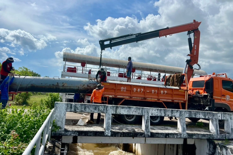 สชป.7 ติดตั้งเครื่องผลักดันน้ำ พร้อมบริหารจัดการน้ำและเฝ้าระวังอย่างเต็มกำลัง