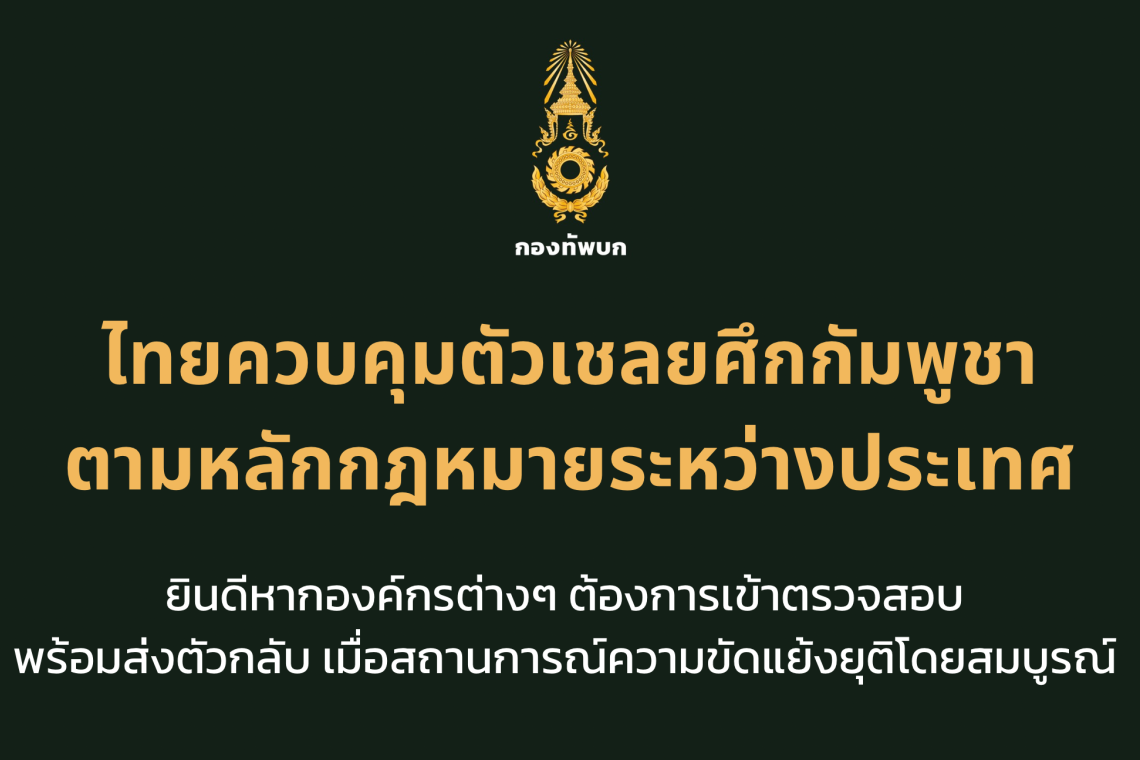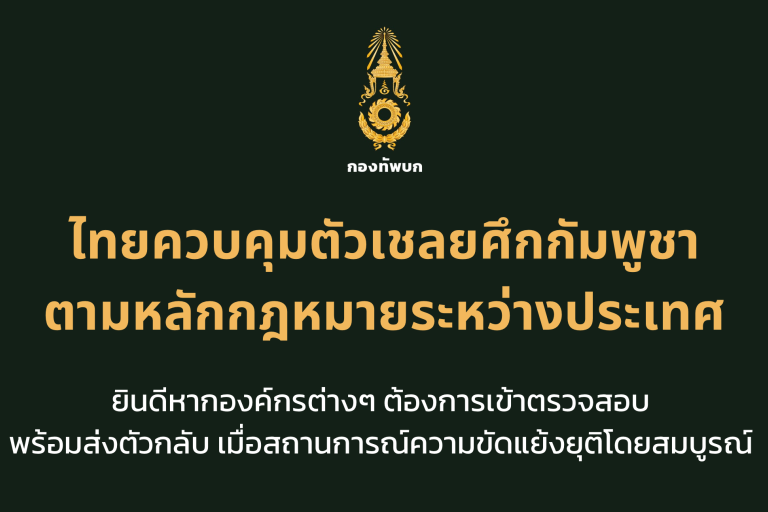 “กองทัพบก” โต้ “เขมร” ย้ำควบคุมตัวทหารกัมพูชา 18 นาย ยึดหลักอนุสัญญาเจนีวา ยันพร้อมส่งตัวกลับเมื่อสถานการณ์ความขัดแย้งยุติโดยสมบูรณ์