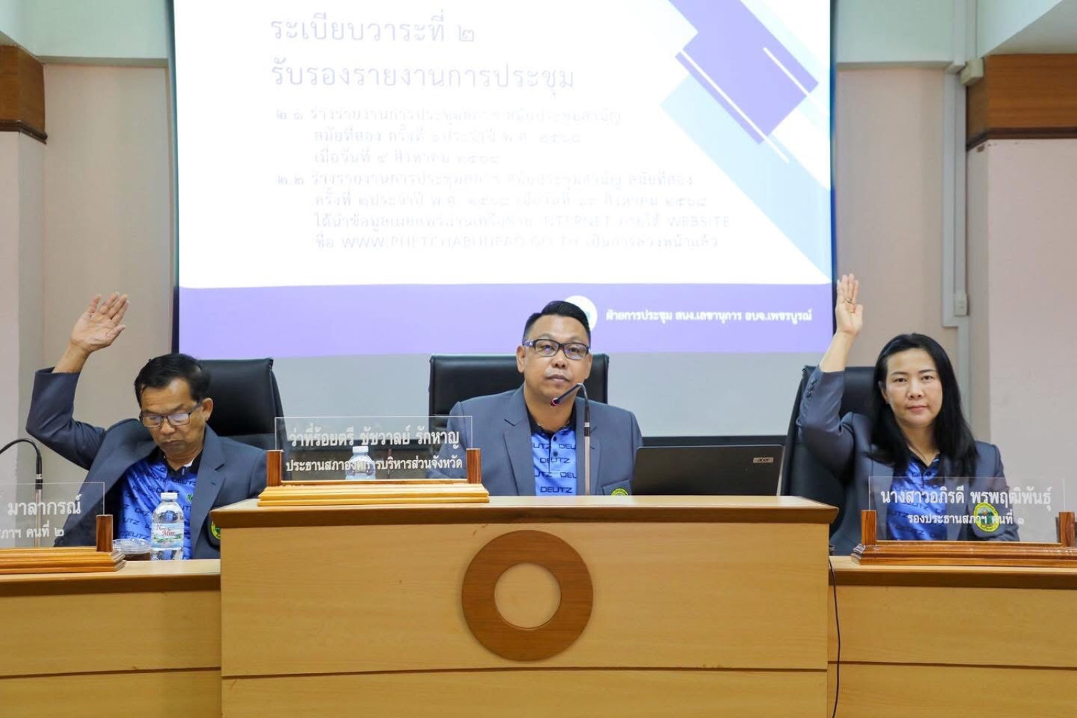 วันที่ 8 ก.ย.68 ที่ห้องประชุมสภาองค์การบริหารส่วนจังหวัดเพชรบูรณ์ ว่าที่ร้อยตรีชัชวาลย์ รักหาญ ประธานสภาองค์การบริหารส่วนจังหวัดเพชรบูรณ์ เป็นประธานเปิดการประชุมสภาองค์การบริหารส่วนจังหวัดเพชรบูรณ์ สมัยประชุมสามัญ สมัยที่ 2 ครั้งที่ 3 ประจำปี พ.ศ. 2568 ฝ่ายบริหารนำโดย นายอัครเดช ทองใจสด นายกองค์การบริหารส่วนจังหวัดเพชรบูรณ์ นายคณีธิป บุณยเกตุ และนายณรงค์ศักดิ์ หอมมาลัย รองนายกองค์การบริหารส่วนจังหวัดเพชรบูรณ์ และคณะผู้บริหารเข้าร่วมฯ