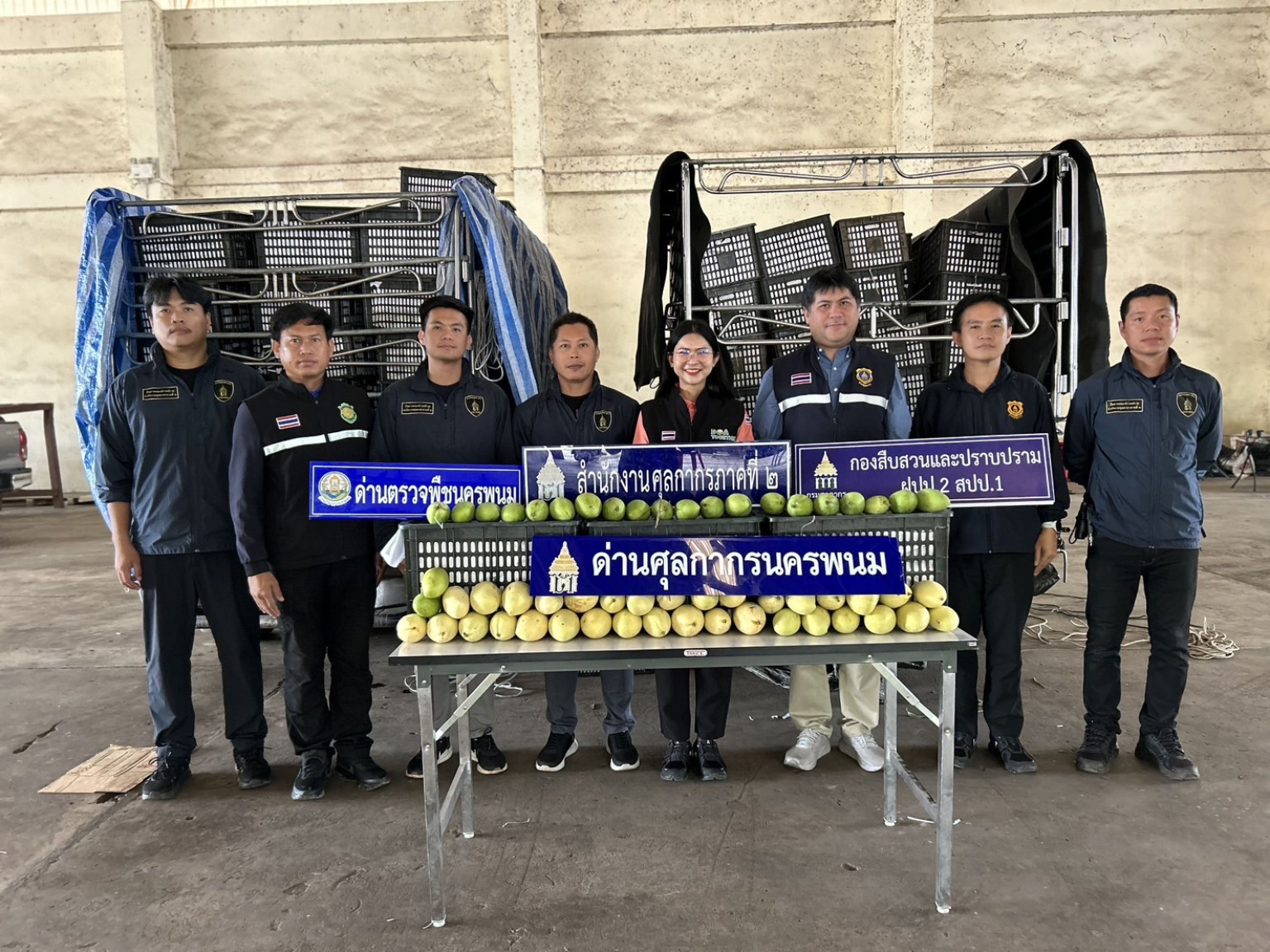 เมื่อวันที่ 9 กันยายน 2568 เวลา 04.30 น. นายสุรัตน์ เรืองประยูร ผู้อำนวยการส่วนควบคุมทางศุลกากร สำนักงานศุลกากรภาคที่ 2 ได้สั่งการให้ นายสมพล ไทยจงรักษ์ หัวหน้าฝ่ายสืบสวนและปราบปราม สำนักงานศุลกากรภาคที่ 2 พร้อมด้วยเจ้าหน้าที่ชุดสืบสวนและปราบปราม ร่วมกับหน่วยปฏิบัติการพิเศษเพื่อเพิ่มประสิทธิภาพการควบคุมทางศุลกากรและการจัดเก็บรายได้ ศภ.2 หน่วยสืบสวนและปราบปรามประจำพื้นที่ภาคตะวันออกเฉียงเหนือ ได้ร่วมทำการตรวจค้นรถยนต์กระบะเสริมคอกเหล็ก สีขาวและสีเทา ต้องสงสัย จำนวน 2 คัน บริเวณถนนหมายเลข 12 อ.กุฉินารายณ์ จ.กาฬสินธุ์ เนื่องจากการสืบสวนและการข่าว พบว่าจะมีการลักลอบหนีศุลกากรบริเวณริมโขงแนวชายแดนของจังหวัดมุกดาหาร ผ่านเส้นทางดังกล่าวมุ่งตรงสู่พื้นที่ชั้นใน ผลการตรวจค้นพบ มะม่วงแก้วขมิ้น เมืองกำเนิดต่างประเทศ จำนวน 210 ลัง น้ำหนักประมาณ 4,200 กิโลกรัม มูลค่ากว่า 250,000 บาท บรรทุกอยู่ท้ายรถยนต์กระบะเสริมคอกเหล็กทั้งสองคัน โดยไม่มีเอกสารหรือหลักฐานการผ่านพิธีการศุลกากรโดยถูกต้องมาแสดงต่อเจ้าหน้าที่