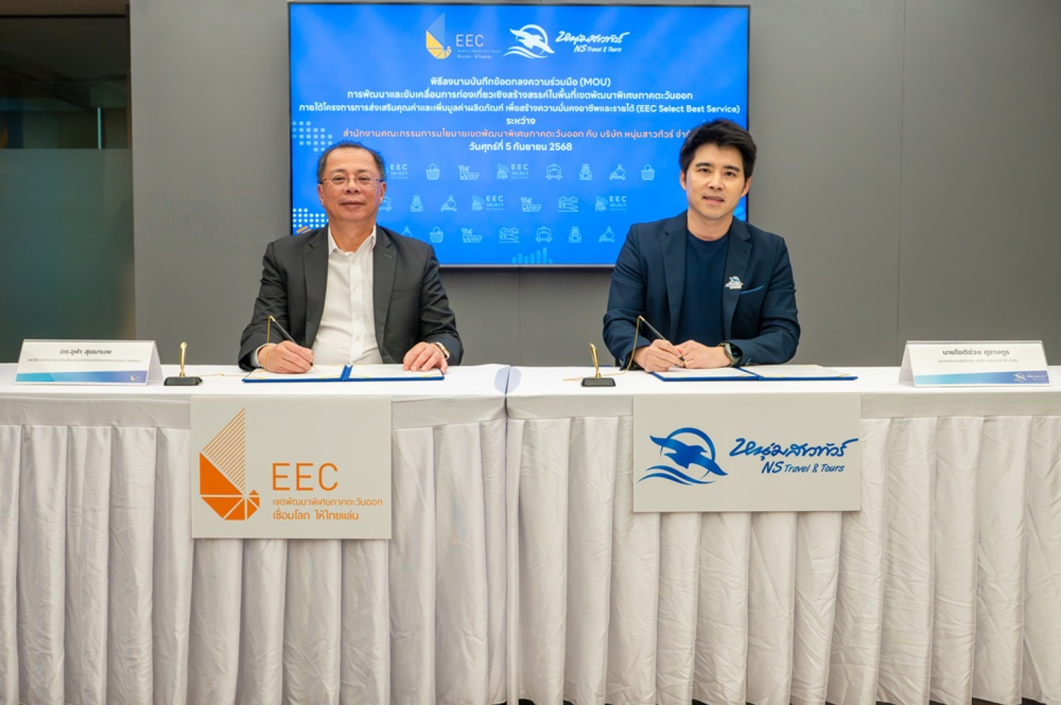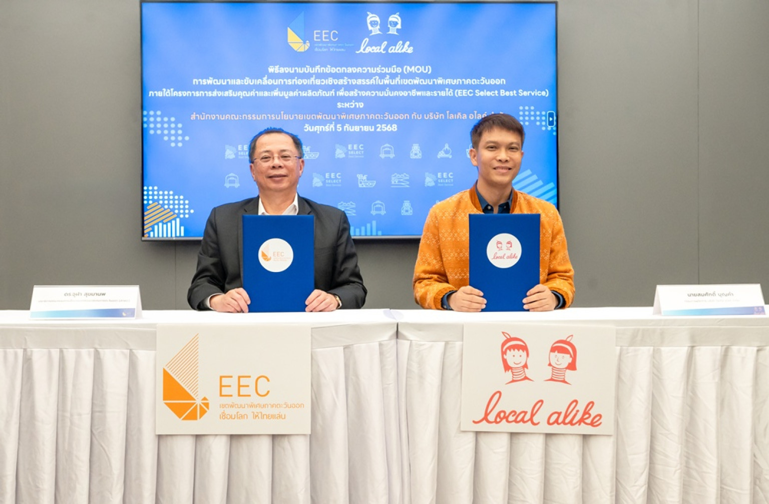 ในวันที่ 5 กันยายน 2568 สำนักงานคณะกรรมการนโยบายเขตพัฒนาพิเศษภาคตะวันออก (สกพอ.) ร่วมลงนามบันทึกข้อตกลงความร่วมมือ (MOU) กับ บริษัท หนุ่มสาวทัวร์ จำกัด และ บริษัท โลเคิล อไลค์ จำกัด เพื่อพัฒนาและขับเคลื่อนการท่องเที่ยวเชิงสร้างสรรค์ ในพื้นที่เขตพัฒนาพิเศษภาคตะวันออก (EEC) ภายใต้โครงการการส่งเสริมคุณค่าและเพิ่มมูลค่าผลิตภัณฑ์ เพื่อสร้างความมั่งคงอาชีพและรายได้ มุ่งยกระดับคุณภาพชีวิตประชาชน เสริมศักยภาพเศรษฐกิจฐานราก และสร้างโมเดลการท่องเที่ยวที่เชื่อมโยงวัฒนธรรม ภูมิปัญญาท้องถิ่น และเศรษฐกิจสร้างสรรค์อย่างเป็นรูปธรรม