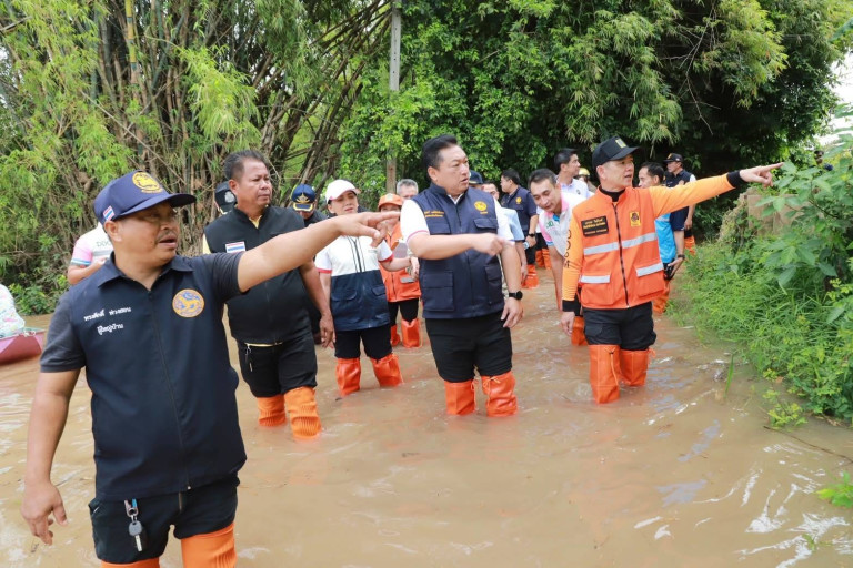 เมื่อเวลา 09.30 วันที่ 9 ก.ย.68 ผู้สื่อข่าวรายงานว่า นายชวนินทร์ วงศ์สถิตจิรกาล ผู้ว่าราชการจังหวัดอ่างทอง ลงพื้นที่หมู่ 3 ต.โผงเผง อ.ป่าโมก จ.อ่างทอง เพื่อติดตามสถานการณ์น้ำและเยี่ยมให้กำลังใจพี่น้องประชาชนที่เริ่มได้รับผลกระทบจากปรับเพิ่มการระบายน้ำท้ายเขื่อนเจ้าพระยา ในพื้นที่ ต.โผงเผง อ.ป่าโมก จ.อ่างทอง พร้อมด้วยนางศุทธิกานต์ วงศ์สถิตจิรกาล ประธานแม่บ้านมหาดไทย/นายกเหล่ากาชาดจังหวัดอ่างทอง ป้องกันและบรรเทาสาธารณภัยจังหวัดอ่างทอง นายแพทย์สาธารณสุขจังหวัดอ่างทอง อำนวยการโครงการชลประทานอ่างทอง ประชาสัมพันธ์จังหวัดอ่างทอง นายอำเภอป่าโมก ผู้แทนส่วนราชการจังหวัดอ่างทอง และเจ้าหน้าที่ที่เกี่ยวข้อง เข้าร่วม