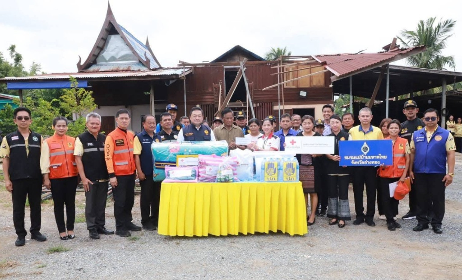 ผู้ว่าฯอ่างทอง พร้อมนายกเหล่ากาชาด มอบเครื่องอุปโภคบริโภค บรรเทาความเดือดร้อนผู้ประสบวาตภัยใน ต.จำลอง อ.แสวงหา