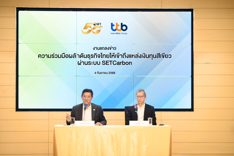 ตลาดหลักทรัพย์ฯ และ ทีเอ็มบีธนชาต หรือ ทีทีบี ผนึกกำลังเพื่อขยายระบบนิเวศการเงินเพื่อความยั่งยืน (Sustainable Finance) มุ่งสนับสนุนธุรกิจไทยให้เข้าถึงแหล่งเงินทุนสีเขียว ด้วยการใช้ข้อมูล ESG พิจารณาสินเชื่อ และส่งเสริมให้ลูกค้าธนาคารมีระบบช่วยจัดการ คำนวณ และรายงานข้อมูลการปล่อยก๊าซเรือนกระจกอย่างมีประสิทธิภาพผ่านระบบ SETCarbon ซึ่งจะทำหน้าที่เป็น “พาสปอร์ต” ให้ธุรกิจทุกขนาดสามารถเข้าถึงสินเชื่อที่มีสิทธิประโยชน์มากกว่าสินเชื่อทั่วไป ความตั้งใจร่วมกันของตลาดหลักทรัพย์ฯ และ ทีทีบี จะเป็นส่วนหนึ่งที่ผลักดันให้ภาคธุรกิจบรรลุเป้าหมายด้านความยั่งยืน และเติบโตไปพร้อมกับการสร้างระบบการเงินที่ยั่งยืน