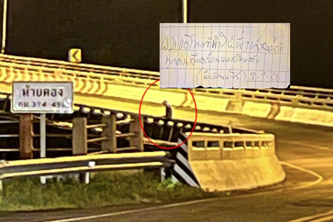 วันที่ 9 ก.ย.68 ร.ต.อ.พิทักษ์ ดีแซง พนักงานสอบสวน สภ.บ้านกลาง อ.หล่มสัก จ.เพชรบูรณ์ เปิดเผยว่า เมื่อวันที่ 8 ก.ย.68 เวลา 19.45 น.ได้รับแจ้งเหตุจากศูนย์วิทยุ 191 เพชรบูรณ์ว่า มีคนพยายามจะกระโดดสะพานห้วยตองฆ่าตัวตาย นำโดย พ.ต.อ.ภาสันต์ สังข์ทอง ผกก.สภ.บ้านกลางและกำลังเจ้าหน้าที่ตำรวจรุดไปตรวจสอบที่เกิดเหตุบริเวณสะพานห้วยตองหรือสะพานพ่อขุนผาเมือง ซึ่งเป็นสะพานที่มีตอม่อสูงที่สุดในประเทศไทย หมู่ 10 ต.ปากช่อง อ.หล่มสัก จ.เพชรบูรณ์ ทางหลวงหมาย 12 (หล่มสัก-ชุมแพ) ที่บริเวณราวสะพานฝั่งซ้ายมุ่งหน้าไปอำเภอชุมแพ
